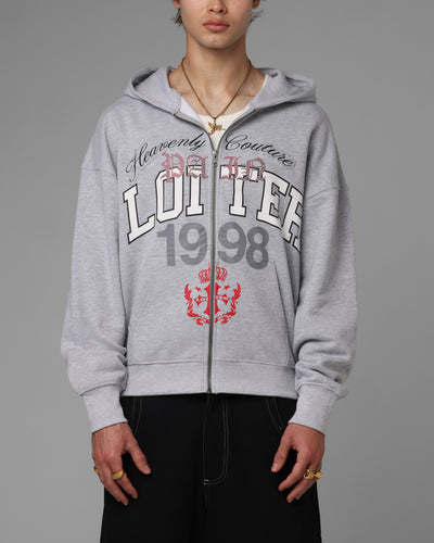 Whether you're strolling around the city or kicking back at home, this Loiter zip hoodie delivers a classic look with contemporary comfort. The dropped shoulders provide a casual feel as you go about your day. A ribbed hem and cuffs and soft cotton construction to keep things cosy. For style that endures, this hoodie is yours. Cop it today at Culture Kings. - Printed graphics - Ribbed trims - Hood - Rhinestone details - Dropped shoulders - Kangaroo pocket - Full zip close - Relaxed fit - Color: Grey - Style: LTQ325059