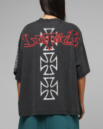 Level up your drip with the Hardcore Premium T-Shirt by Loiter. This tee is the perfect addition to your wardrobe needs, featuring printed graphics on soft cotton fabric. With its laidback vibe and street-ready style, it's a must-cop piece. - Printed graphics - Dropped shoulders - Ribbed crewneck - Twin-needle stitching - Vintage wash - Short sleeves - Relaxed fit - Material: 100% Cotton - Color: Washed Black - Style: LTQ425145