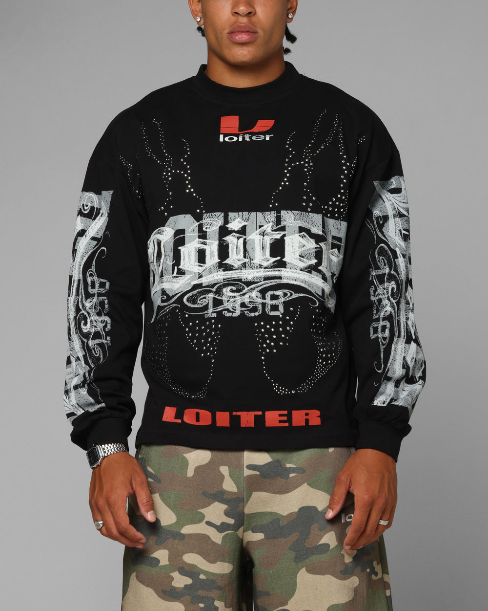 Make the ultimate statement in the Low Rider Long Sleeve T-Shirt by Loiter. Created to stand out, this tee boasts inspiring printed graphics on an incredibly soft cotton long sleeve tee with dropped shoulders to keep the laidback, streetwear vibes going. Cop yours today at Culture Kings, only while stock lasts. - Printed graphics - Twin-needle stitching - Ribbed crewneck - Vintage wash - Dropped shoulders - Long sleeves - Relaxed fit - Material: 100% Cotton - Color: Black - Style: LTQ425133