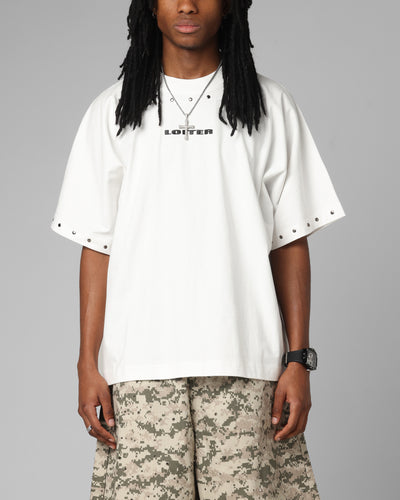 Elevate your style game with the Opaque Boxy T-Shirt by Loiter. Designed for those who dare to be different, this tee features an embroidered logo to the chest with metal stud details along the sleeves on a supremely soft cotton fabric, complete with relaxed dropped shoulders for that effortlessly cool streetwear look. Elevate your wardrobe and grab yours now at Culture Kings—stock is limited, so don’t miss out! - Embroidered - Dropped shoulders - Twin needle stitching - Metal stud details - Ribbed crewneck - Oversized box fit - Material: 100% Cotton - Color: Off White - Style: LTQ325038