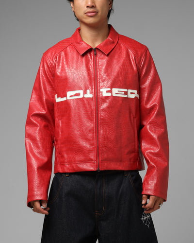 Get your hands on the Loiter Speedster Jacket. Made from a vegan leather with dropped shoulders for a classic look. Featuring custom embroidered graphics and a full zip up close for a customise look. Cop yours today at Culture Kings. - Embroidered graphics - Dropped shoulders - Vegan leather - Full zip up close - Collared - Long sleeves - Relaxed box fit - Color: Red - Style: LTQ126184