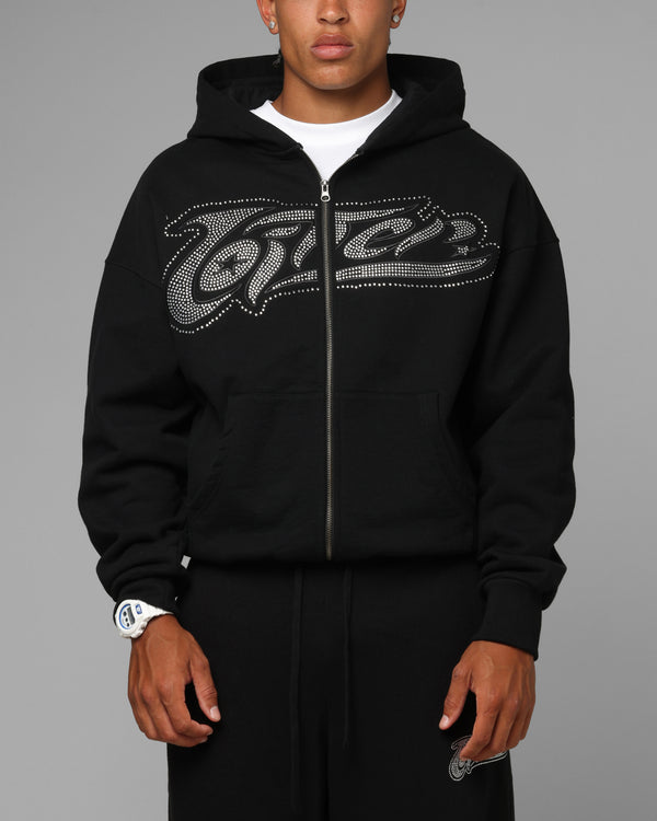 Loiter Silicone Rhinestone Zip Hoodie Black